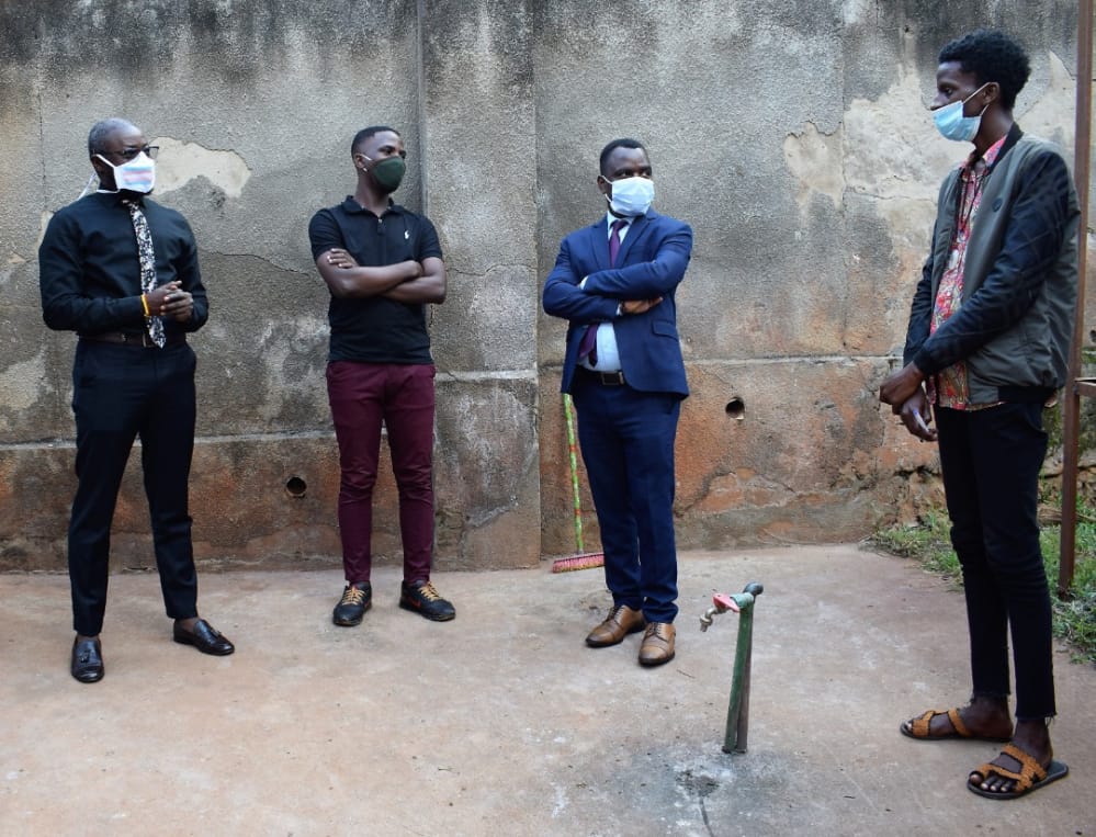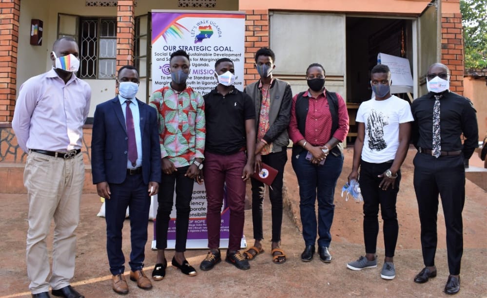Bwebale Davis the Shelter Administrator at Hands of Hope addressing the Executive Director of Sexual Minorities Uganda (2nd Left), Executive Director of Let's Walk Uganda (Right) Pepe J Onziema (2nd Right).