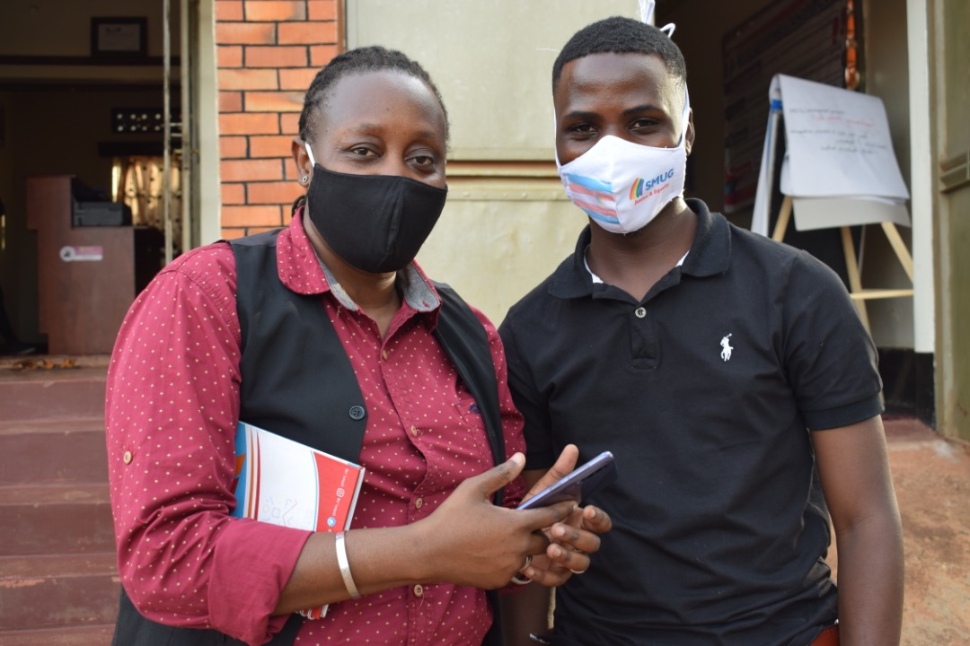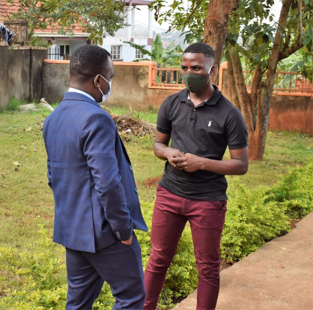 The Executive Director of Let's Walk Uganda Eric Ndawula (Left) in a one on one session with Dr Frank Mugisha the Executive Director of Sexual Minorities during the courtesy visit at Let's Walk Uganda offices .